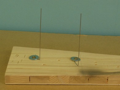 Tischlerplatte, Federstahldraht (0,8mm Durchmesser), zwei